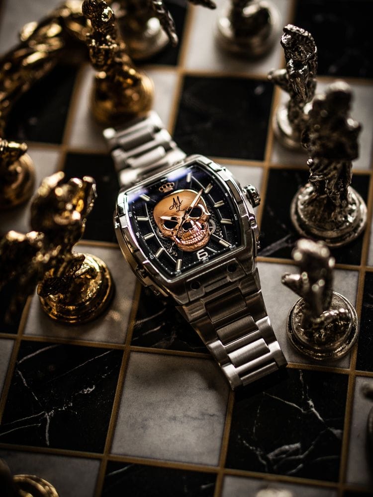 El reloj de edición limitada automática MVL "DOUBLE SKULL" cuenta con un movimiento de calidad. Este movimiento es conocido mundialmente por sus movimientos confiables y de calidad, comparable con ¡calidad suiza!